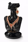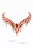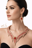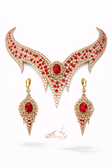 An elegant oriental-style jewelry set decorated with premium light peach crystals and a red crystal accent for ballroom dancing or belly dancing.