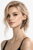 Bold geometric statement earrings crafted with shimmering black crystals. Lightweight and eye-catching, they add a dramatic sparkle in motion — perfect for ballroom, Latin dance, stage performances, and photoshoots.