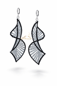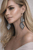 Sparkling statement earrings in a bold geometric silhouette, crafted with shimmering black and crystal rhinestones. Lightweight and eye-catching in motion — perfect for ballroom, Latin dance, stage performances, and photoshoots.