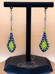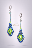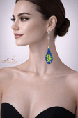 Striking long drop earrings embellished with deep blue crystals and vibrant neon accents. Designed to sparkle with every move, they create a bold stage effect — perfect for ballroom, Latin dance, competitions, and photoshoots
