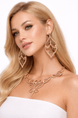 The matching statement earrings and necklace sparkle beautifully under stage lights, enhancing movement, posture, and expression.