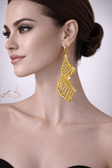 Sparkling statement earrings in a bold geometric silhouette, crafted with shimmering golden crystals. Lightweight and eye-catching in motion — perfect for ballroom, Latin dance, stage performances, and photoshoots.