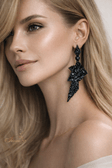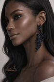 Bold asymmetrical statement earrings embellished with deep midnight-blue crystals. Lightweight and dramatically sparkling under stage lights — perfect for ballroom, Latin dance, competitions, and photoshoots.
