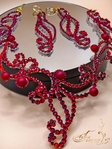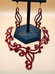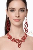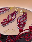 Dramatic ballroom jewelry set featuring a sparkling red crystal necklace with matching statement earrings. Designed to catch the light with every move, it adds bold elegance and stage-ready shine — perfect for Latin dance, ballroom competitions, and show performances.